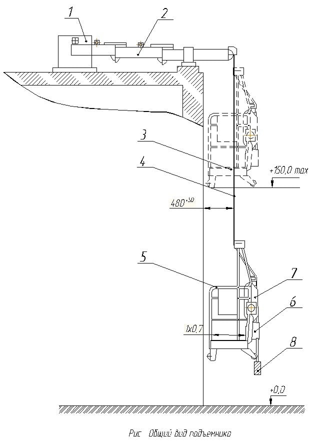 6 - ловитель; 7 - лебедка с канатоведущими шкивами; 8 - натяжной груз