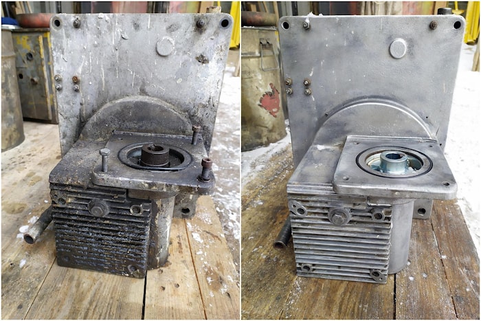 | 1. Механическое повреждение червячной шестерни редуктора. Решали заменой шестерни. 2. Критический износ зубьев шестерни, вероятная причина - не замененное вовремя масло. Решали заменой масла и заменой шестерни. 3. Дефект зубьев центрального вала. Заменили вал. |