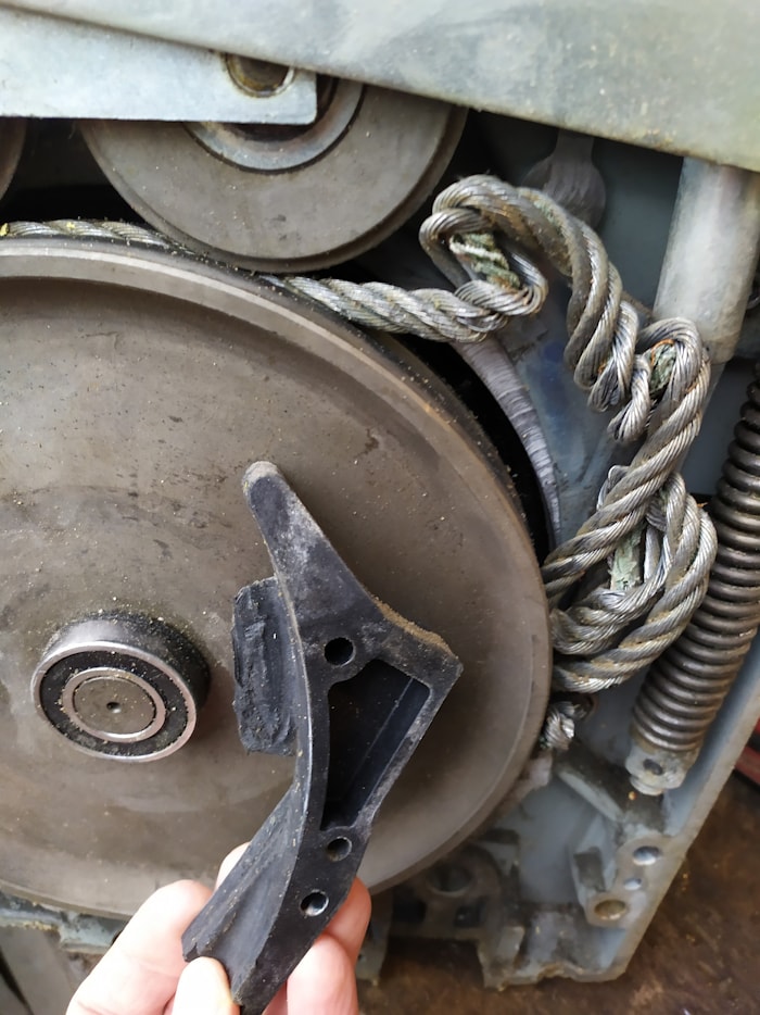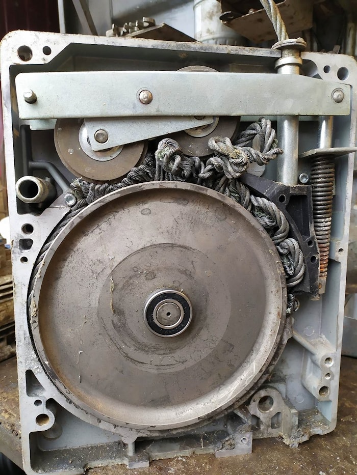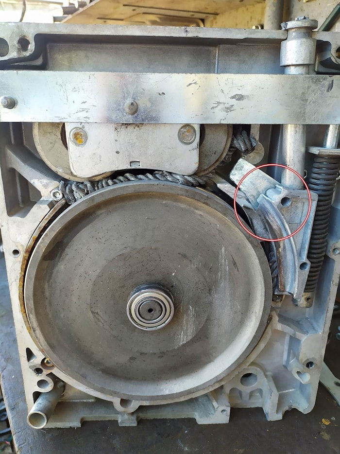 | На всех фото выше мы видим поломки, возникающие в основном из-за износа и разрушения направляющей троса. Также редуктор люльки может "жевать" трос из-за дефектов самого троса, таких, например, как заломы или разрыв пряди. Реже трос может застрять при перестановке люльки, когда он находится в расслабленном состоянии и «гуляет» внутри редуктора. |